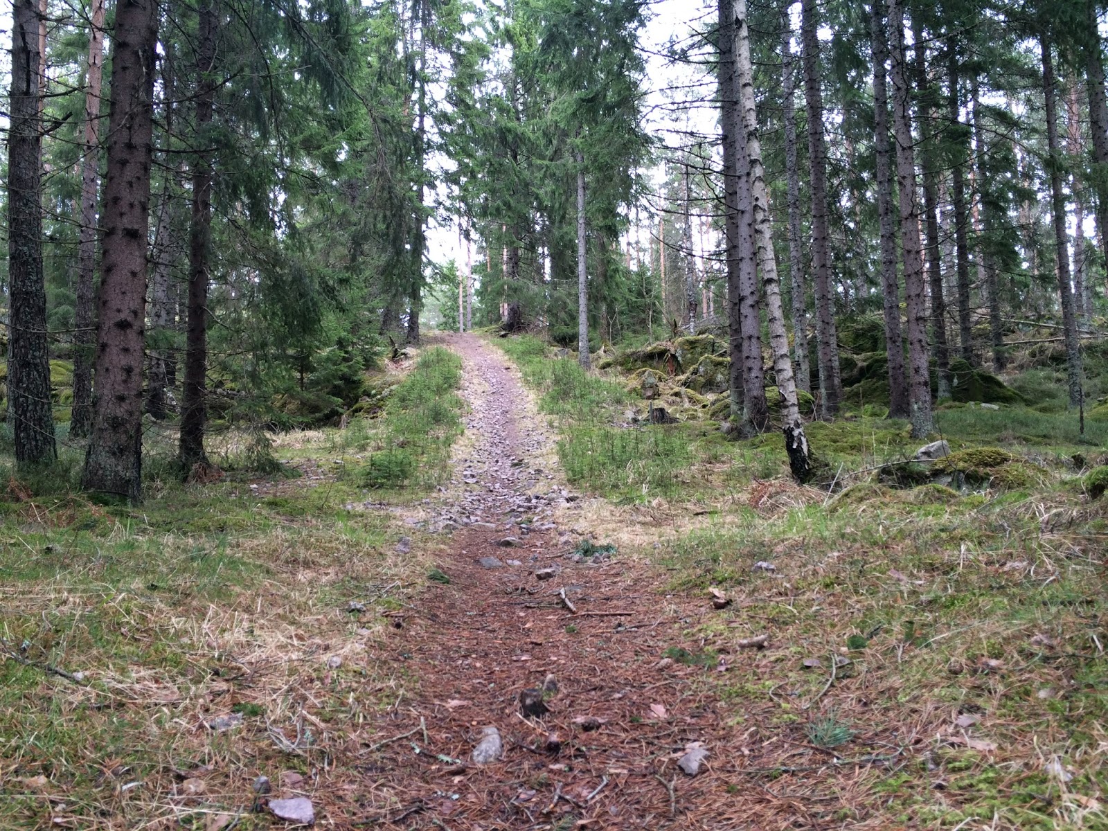 Ut på motionsspåret och mot mål. Jag tittar på klockan och funderar ut om jag ska hinna till 7.30. Men det är lättsprunget och går nerför.